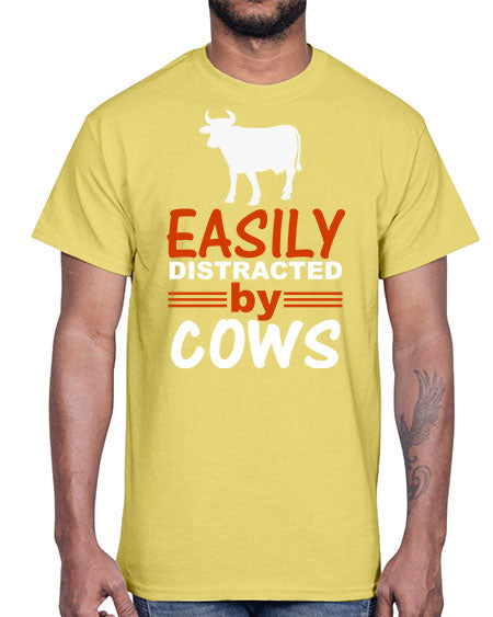 easily distracted by cows Style 4#- cow- Cotton Tee