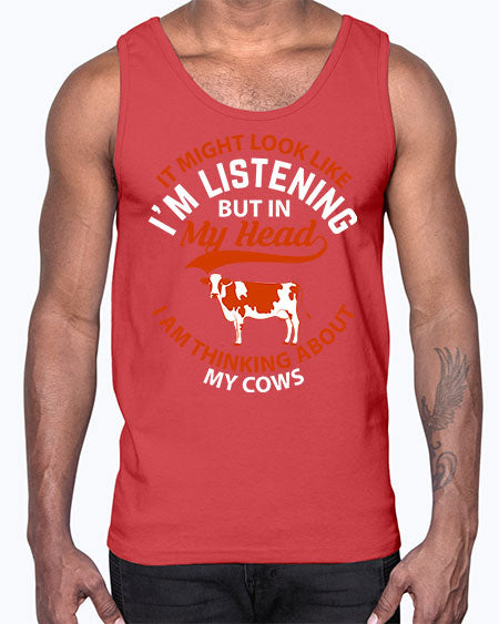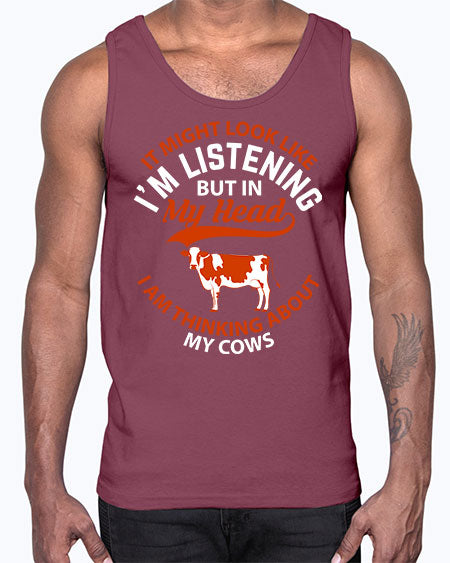 it might look like i’m listening but in my head i am thinking about my cows Style 2#- cow- Cotton Tank