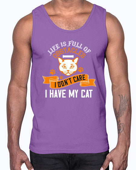 life is full of obstacles idont care ihave my cat Style 66#- cats- Cotton Tank