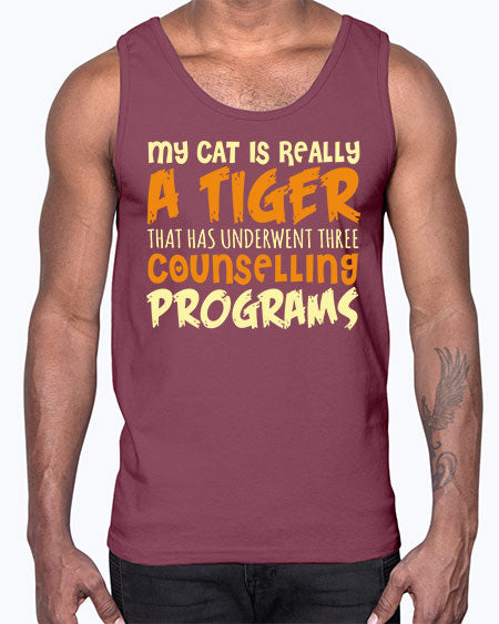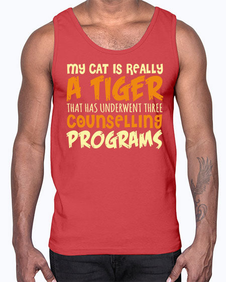 my cat is really a tiger that has underwent three- lion- Cotton Tank