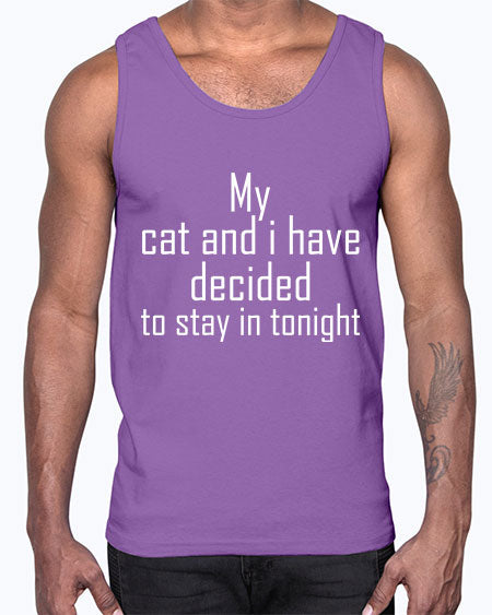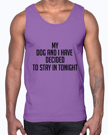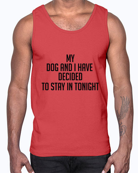 my dog and i have decided to stay in tonight 227#- dogs- Cotton Tank