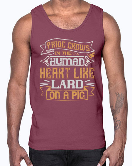 Pride grows in the human heart like lard on a pig Style 34#- pig- Cotton Tank