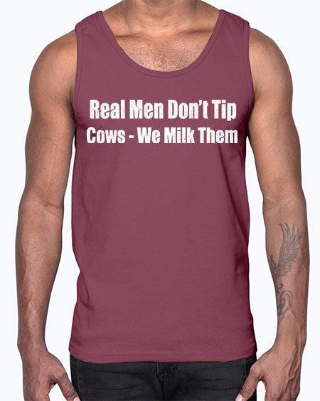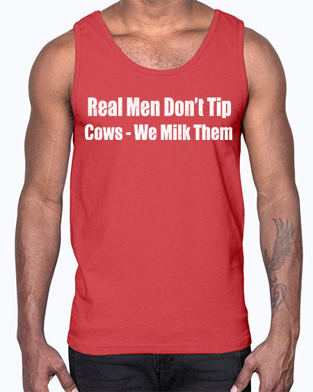 Real men dont tip cows we milk them - cow- Cotton Tank