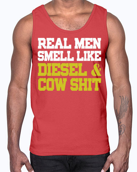 real men smell like diesel and cow poop- cow- Cotton Tank