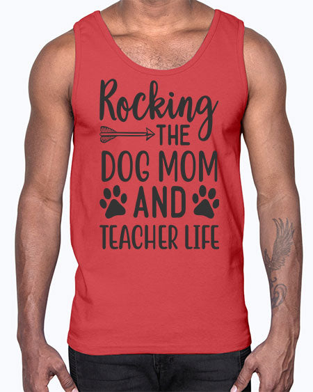 rocking the dog mom and teacher life 238#- dogs- Cotton Tank