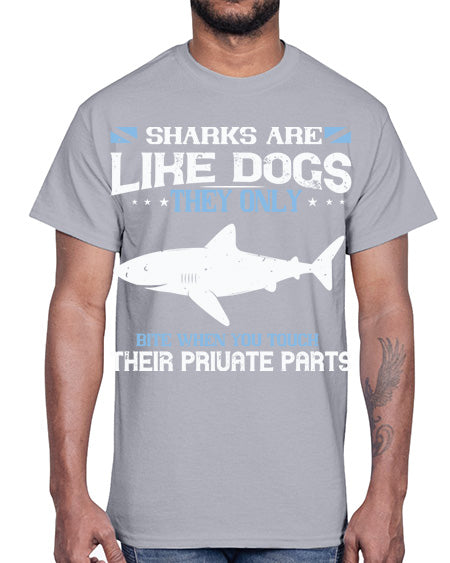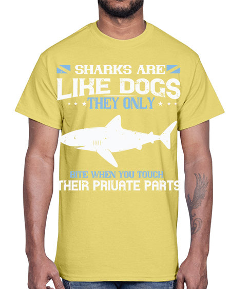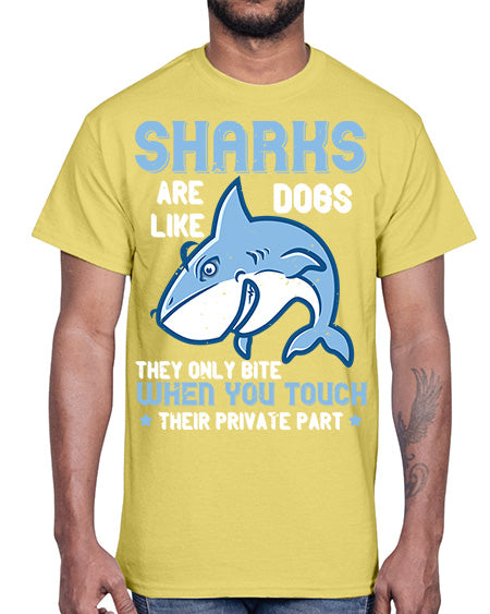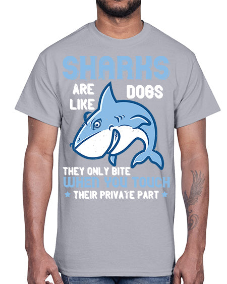 Sharks are like dogs They only bite when you touch their private parts Style 36#- shark-fish- Cotton Tee