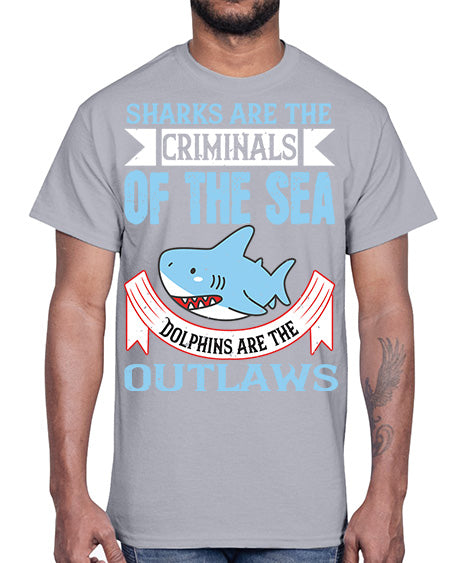Sharks are the criminals of the sea Dolphins are the outlaws Style 32#- shark-fish- Cotton Tee