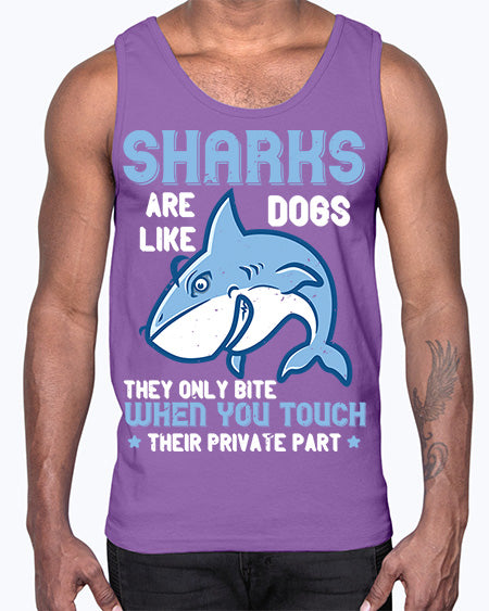 Sharks are like dogs They only bite when you touch their private part Style 38#- shark-fish- Cotton Tank
