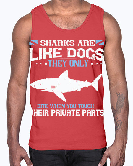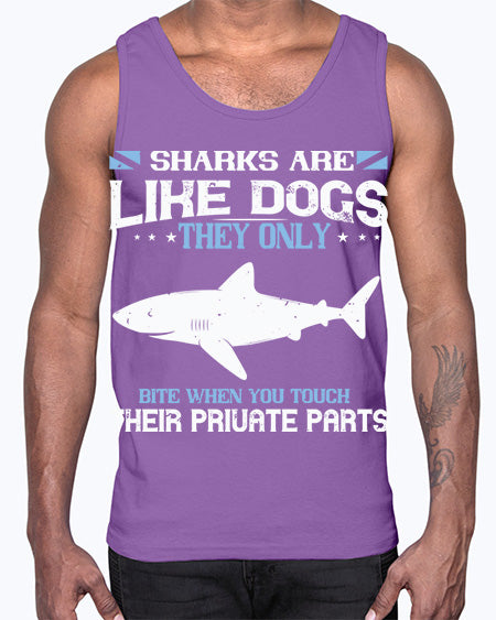 Sharks are like dogs They only bite when you touch their private parts Style 36#- shark-fish- Cotton Tank
