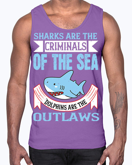 Sharks are the criminals of the sea Dolphins are the outlaws Style 32#- shark-fish- Cotton Tank