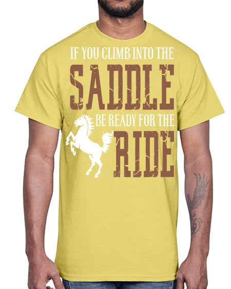 if you climb into the saddle be ready for the ride- horse- Cotton Tee