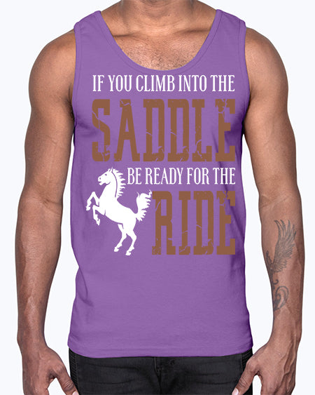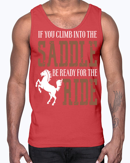 if you climb into the saddle be ready for the ride- horse- Cotton Tank