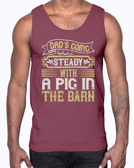 Dad’s going steady with a pig in the barn Style 90#- pig- Cotton Tank