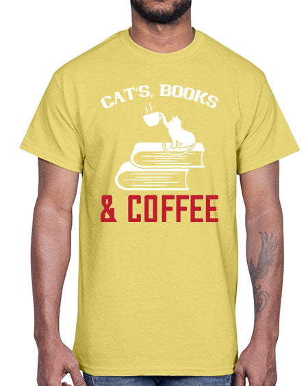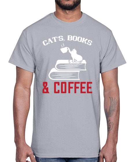 cats book and coffee Style 37#- cats- Cotton Tee