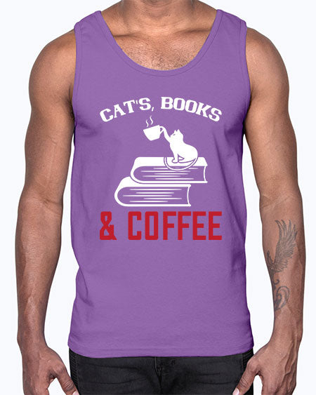 cats book and coffee Style 37#- cats- Cotton Tank