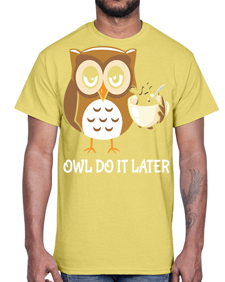 Do It Later funny Cute A TurtleRabbit 4#- owl- Cotton Tee