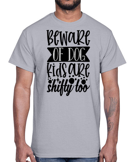beware of dog kids are shifty too 59#- dogs- Cotton Tee
