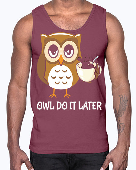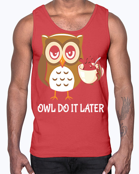 Do It Later funny Cute A TurtleRabbit 4#- owl- Cotton Tank