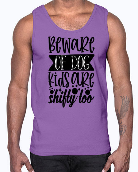beware of dog kids are shifty too 59#- dogs- Cotton Tank