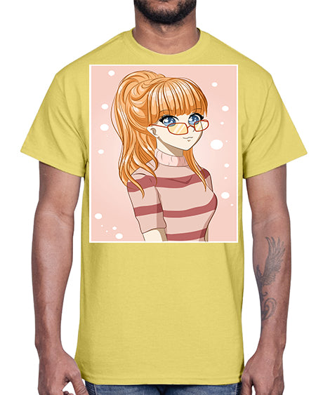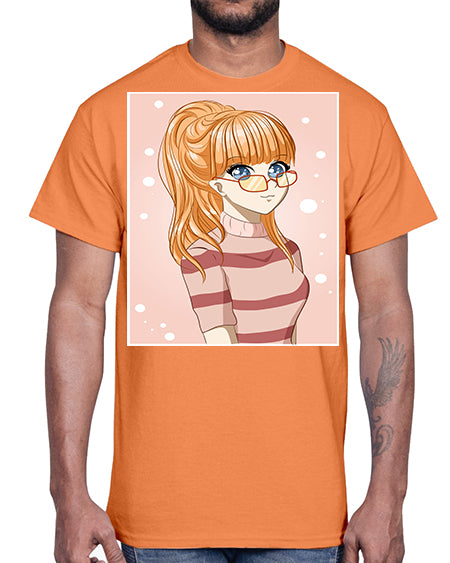 Beautiful and cool girl orange hair with glasses 105#- anime- Cotton Tee