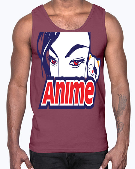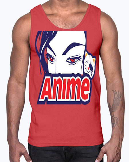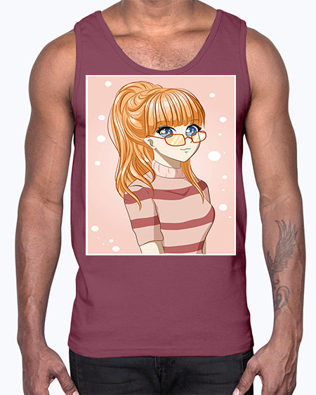 Beautiful and cool girl orange hair with glasses 105#- anime- Cotton Tank