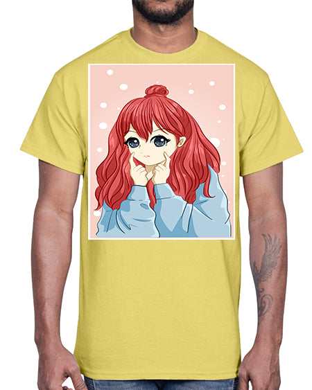 Beautiful and cute girl long red hair with jacket 150#- anime- Cotton Tee