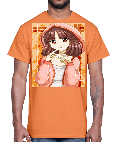Beautiful and cute girl brown hair with jacket 81#- anime- Cotton Tee