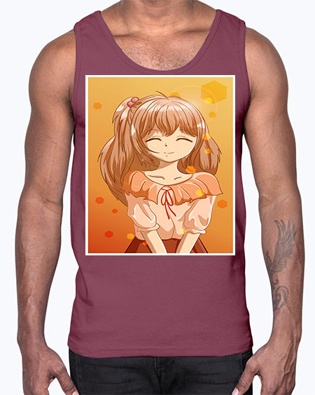 Beautiful and cute girl brown hair at sunset 164#- anime- Cotton Tank