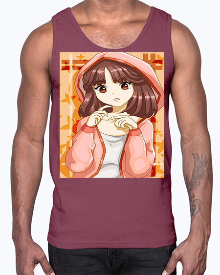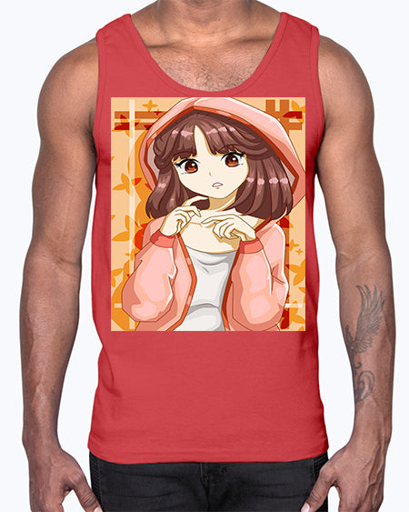 Beautiful and cute girl brown hair with jacket 81#- anime- Cotton Tank