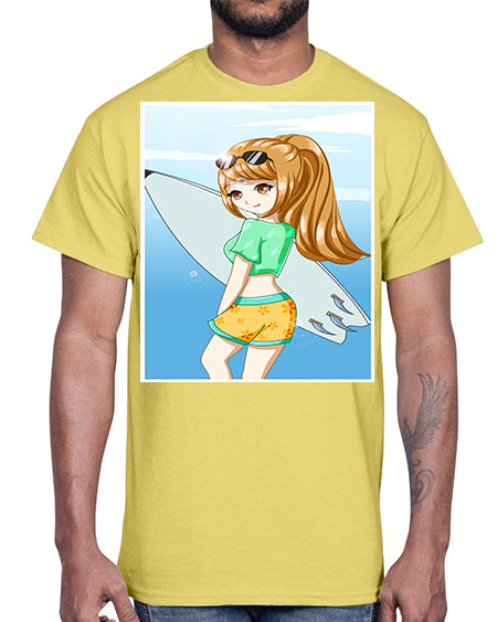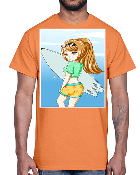 Cool and beautiful girl with surfboard in the summer 172#- anime- Cotton Tee