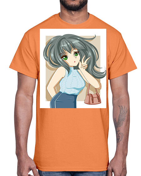 Cool and beautiful girl carry a fashion bag 96#- anime- Cotton Tee