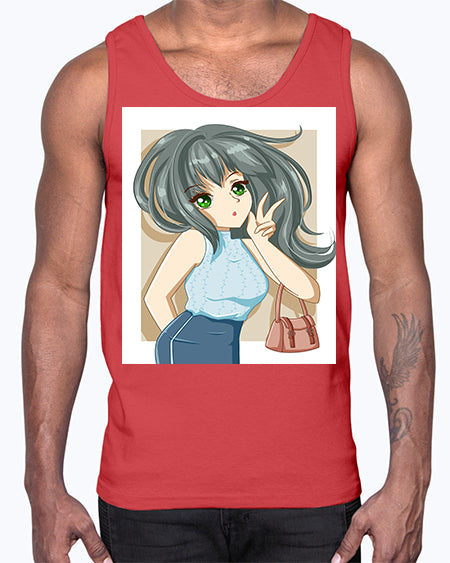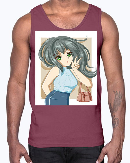 Cool and beautiful girl carry a fashion bag 96#- anime- Cotton Tank