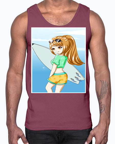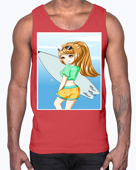 Cool and beautiful girl with surfboard in the summer 172#- anime- Cotton Tank