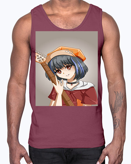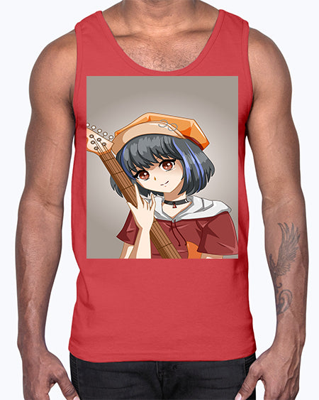 Cool and beautiful rockstar woman with guitar 8#- anime- Cotton Tank