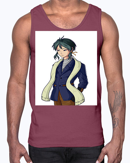 Cool man wearing shawl 59#- anime- Cotton Tank