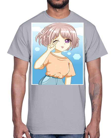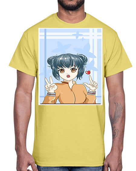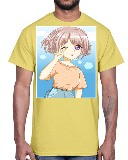 Cute and beautiful girl cream hair yellow shirt 29#- anime- Cotton Tee
