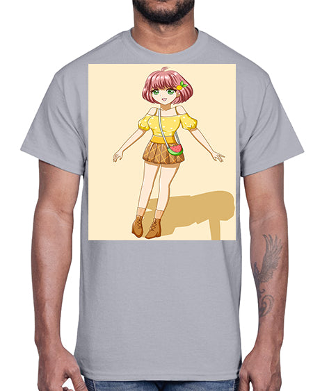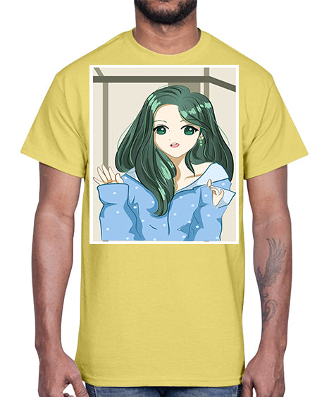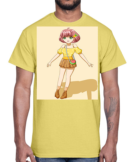 Cute and beautiful girl in summer with yellow dress 54#- anime- Cotton Tee