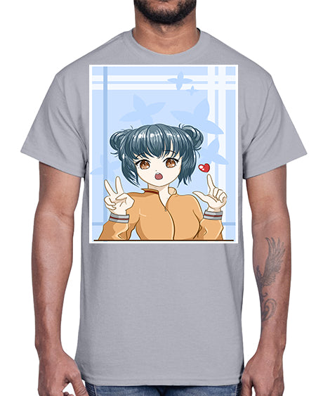 Cute and beautiful girl dark blue hair with love 74#- anime- Cotton Tee