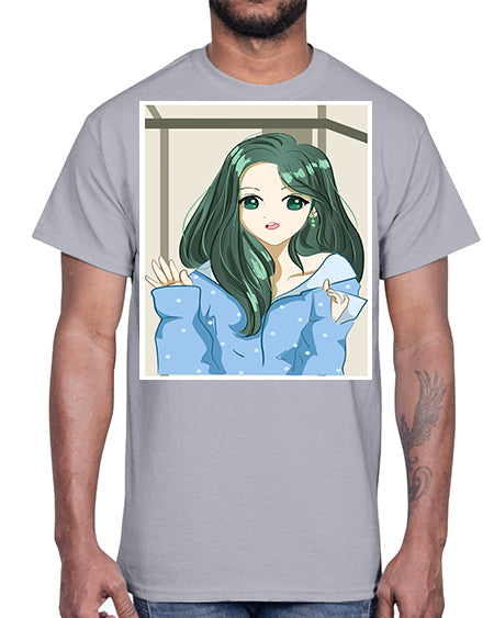 Cute and beautiful girl green long hair 134#- anime- Cotton Tee