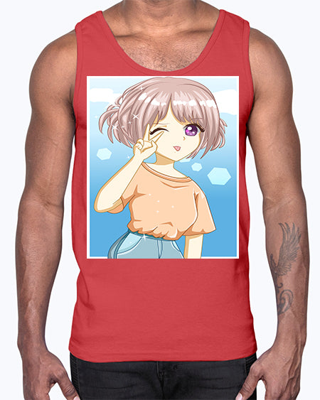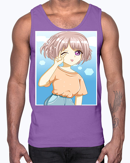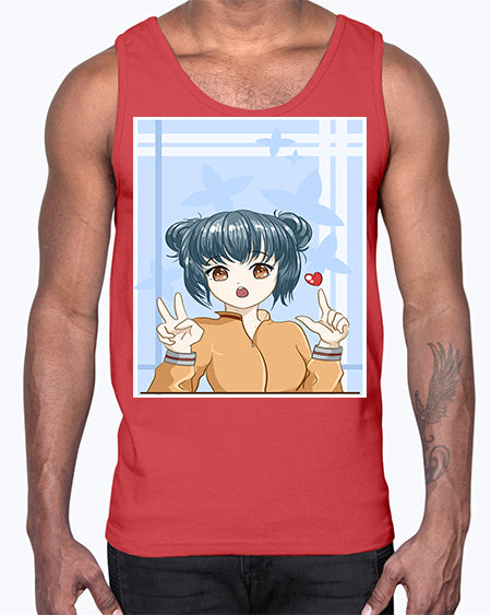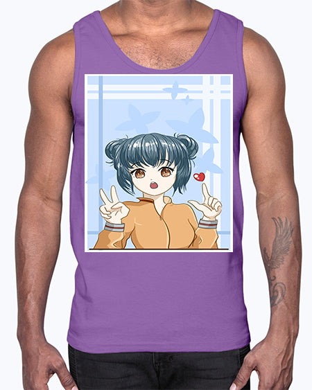 Cute and beautiful girl dark blue hair with love 74#- anime- Cotton Tank