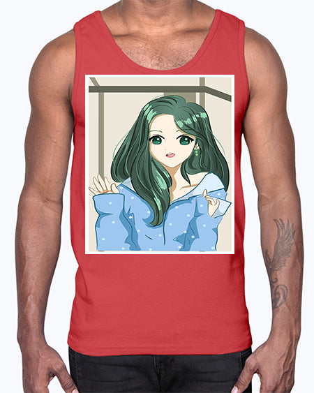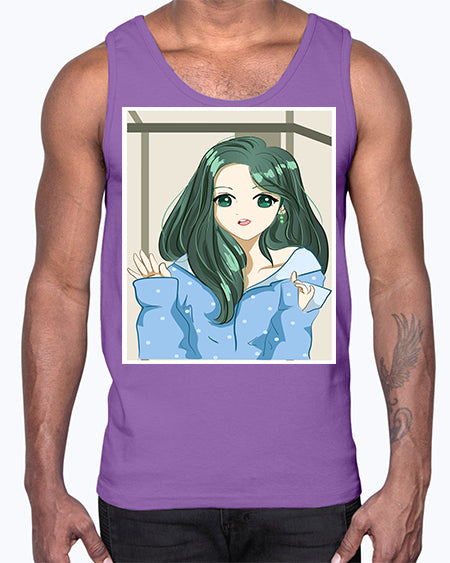 Cute and beautiful girl green long hair 134#- anime- Cotton Tank