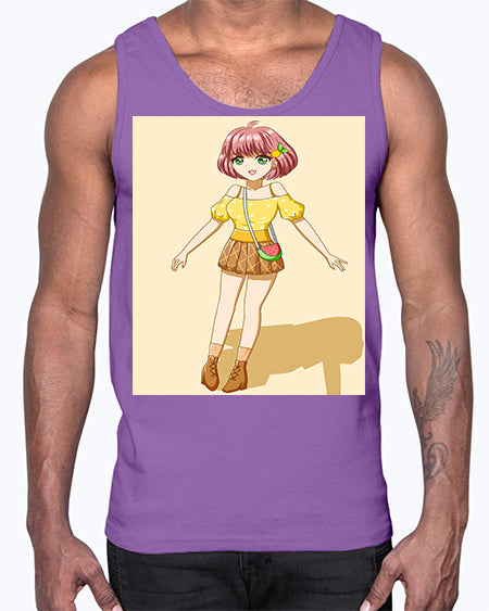 Cute and beautiful girl in summer with yellow dress 54#- anime- Cotton Tank