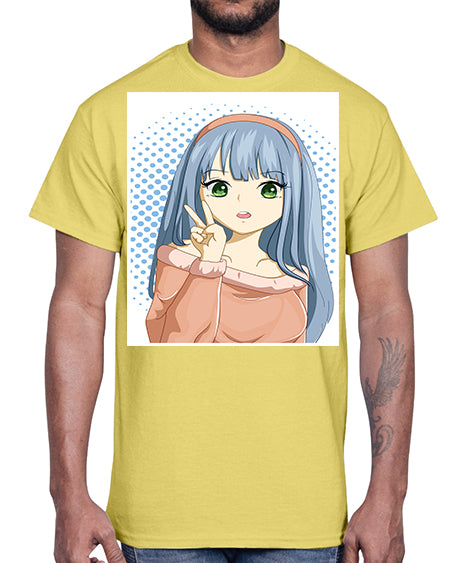 Cute and beautiful girl long blue hair 183#- anime- Cotton Tee