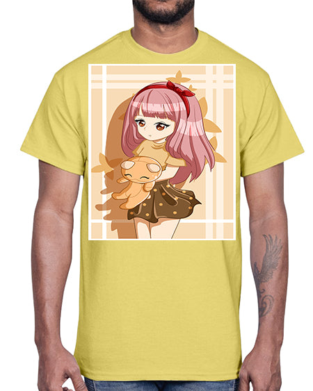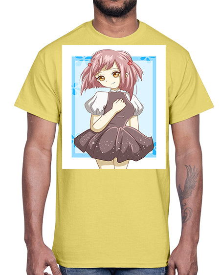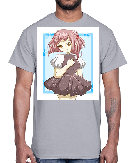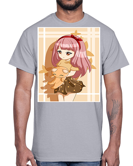 Cute and beautiful girl long pink hair with doll 9#- anime- Cotton Tee