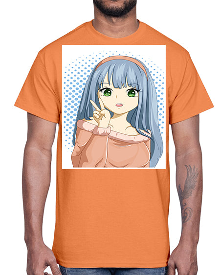 Beautiful and cool girl orange hair with glasses 105#- anime- Cotton Tee