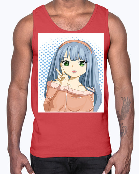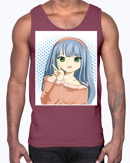 Cute and beautiful girl long blue hair 183#- anime- Cotton Tank