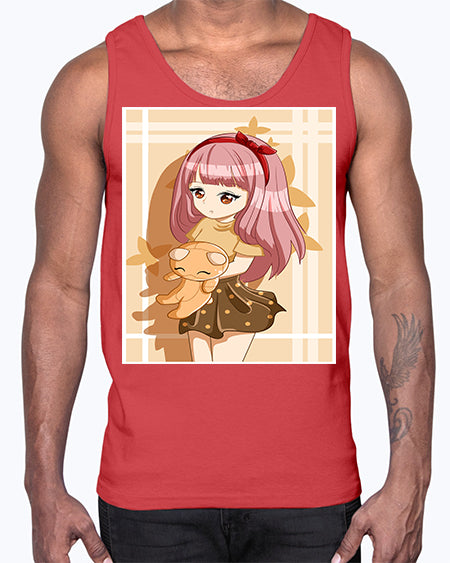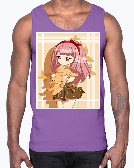 Cute and beautiful girl long pink hair with doll 9#- anime- Cotton Tank