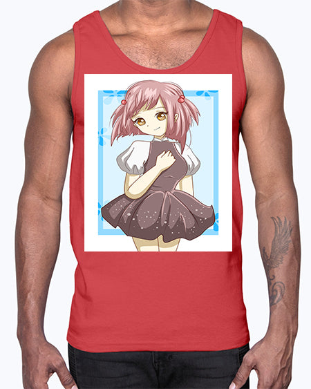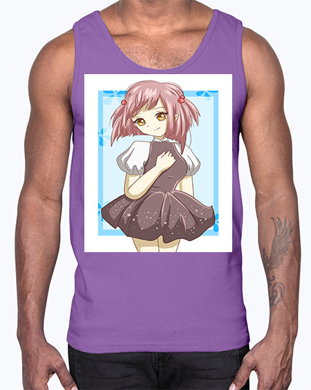 Cute and beautiful girl pink hair with dark pink dress 121#- anime- Cotton Tank