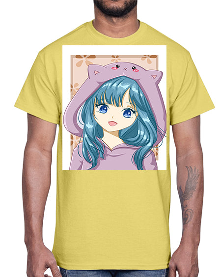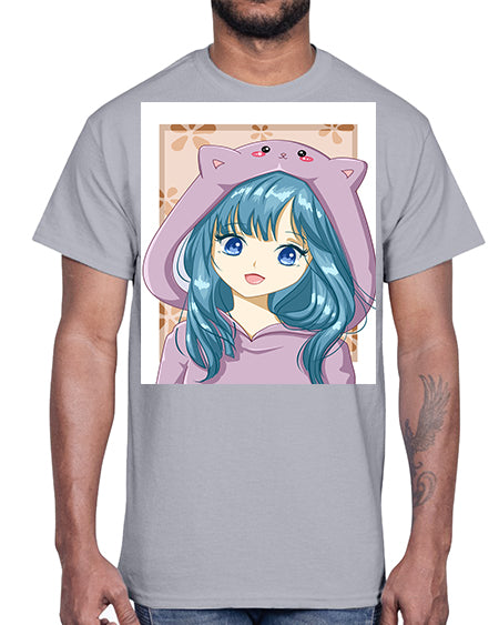Cute and beautiful girl with cat jacket 107#- anime- Cotton Tee