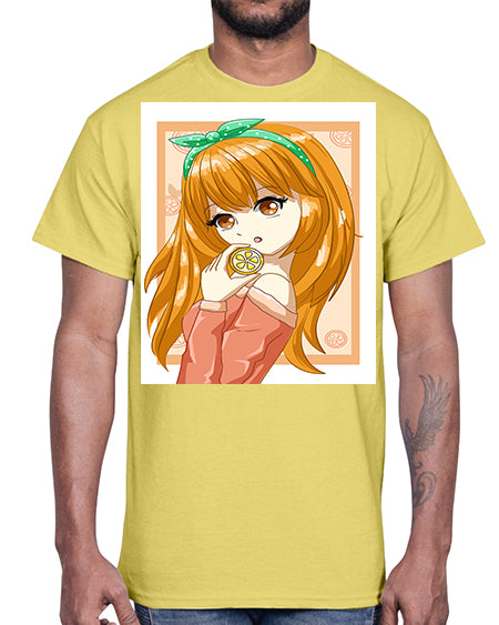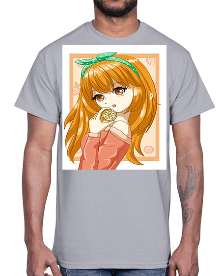 Cute and beautiful girl with orange in the summer 174#- anime- Cotton Tee
